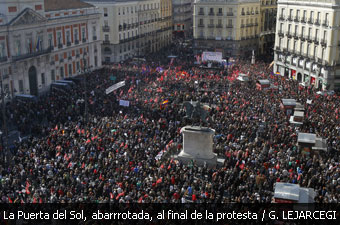 En el primer pulso al Gobierno del PP, CC OO y UGT han movilizado a cientos de miles de personas en 57 ciudades.- En Madrid, con 110.000 manifestantes, se ha desarrollado la protesta más numerosa.- En Bilbao, Barcelona y Valencia también ha habido marchas multitudinarias